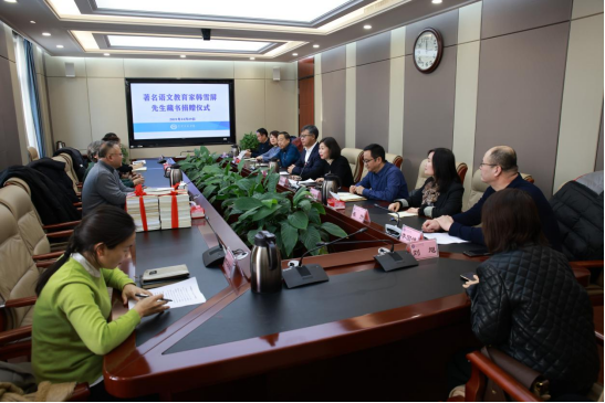12月29日下午,著名语文教育家韩雪屏先生图书捐赠仪式在我校举行。金桩校长出席仪式,格根哈斯副校长主持捐赠仪式。