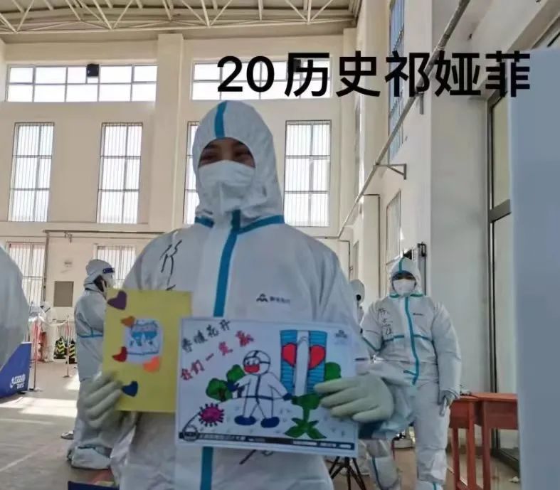 我叫祁娅菲,来自20历史班。我来自包头市,突如其来的疫情不仅推迟了我们的开学,更打乱了我们的生活秩序,作为一名入党积极分子,更应该站在疫情防控第一线,我的工作主要是为做过核酸的人员发放凭证,虽然很累,但为疫情工作奉献自我是十分值得的。