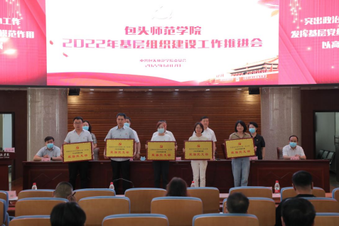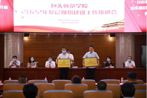 会上首先为我校近两年被教育部命名为“全国党建工作样板党支部”的物理科学与技术学院学生第一党支部、信息科学与技术学院教工第一支部,被命名为2020年度包头市“最强党支部”的五个党支部授牌。