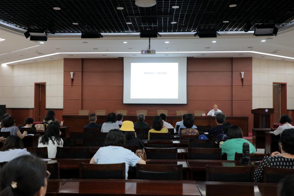 7月1日下午“师说讲坛”正式开讲,教师教育学院邀请我校党委委员、副校长王有亮教授开启第一讲——教师专业化:历史与现实。讲坛由教师教育学院院长郝红英主持。王有亮教授先是结合自身的研究经历,阐述了《教育杂志》在我国早期教师专业化探索方面的史料价值,提醒我们要了解我国教师专业化发展的历史,增加历史自信,增进教育自信和文化自信。之后通过剖析职业与专业的不同,分析了教师走向专业化的必要性和重要性。通过史料的研究,帮助我们梳理了我国教师专业化的历史进程,以及我国教育界学者们对世界教师专业化所做出的巨大贡献,同时结合现状,指出目前教师专业化进程中存在的缺少专业精神和专业规范等问题和困境,鼓励教师尽可能从自身做起,提升自身专业化水平,共同推动中国教师的专业化进程。最后郝红英院长做了总结发言,指出教师专业化与每个教师的专业发展息息相关,推进教师专业化进程不能只靠外部政策与环境,更要靠教师专业发展的自觉性与自主意识。