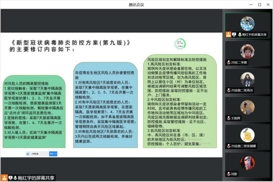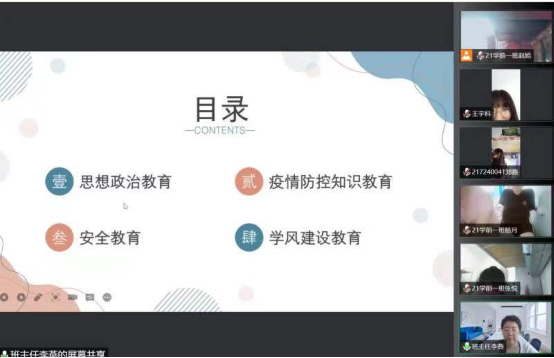 各学院结合返校后实际情况,以班级为单位、由班主任组织,依托线上开展了形式多样、内容丰富的主题班会,如:通过开展党史、新中国史、改革开放史、社会主义发展史学习教育,教育引导学生进一步增强爱党爱国爱社会主义意识;结合国情教育和形势政策教育,培养学生理性、成熟的爱国情怀;根据《包头师范学院2022年秋季学期学生返校疫情防控教育提纲》,开展常态化新冠肺炎疫情防控教育,并组织学习《公民防疫基本行为准则》,提高学生自我防护意识;开展学生意识形态安全、人身财产安全、食品安全、交通安全、消防安全、网络安全、防溺水防火等教育,普及安全知识;通过案例分享、观看视频等形式,强化学生文明意识、纪律行为,严格遵守校规法纪,等等。