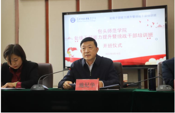 党委副书记施纪华在开班仪式上作动员讲话,代表学校党委对全体参训干部提出三点要求:一要潜心学习领悟,努力提升党性修养。二要把握政治标准,提升政治能力。三要提振发展信心,促进担当作为。