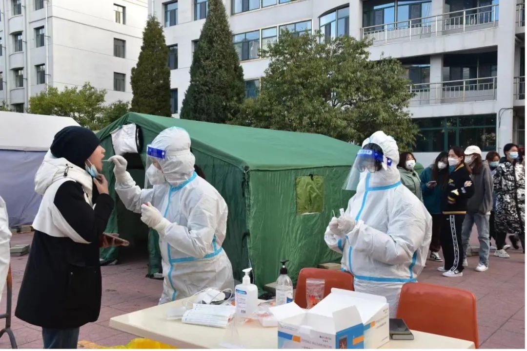 核酸检测结束后,医护工作人员说“学校工作做得很完善,核酸检测点的帐篷很早就搭建好了,给我们节省了很多时间。”