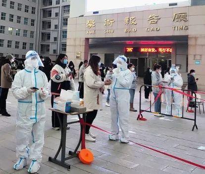 “请同学们戴好口罩,保持一米距离。”今天一早,学校的全员核酸检测工作便开始了。
