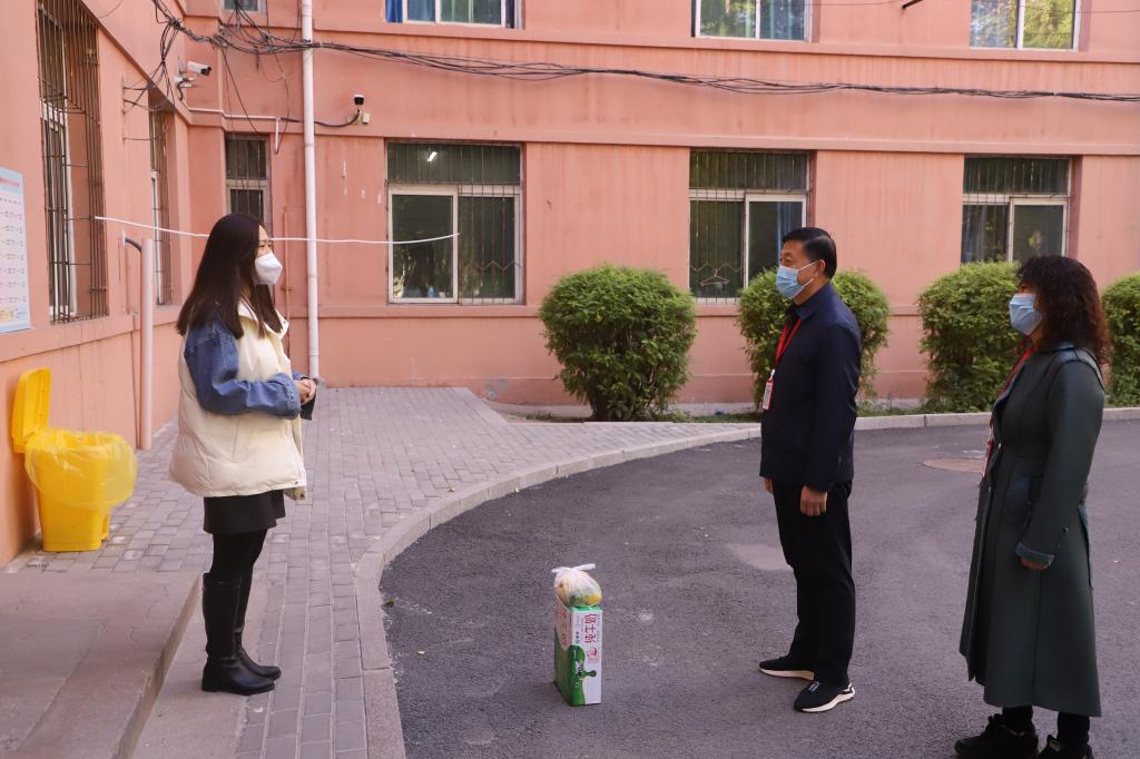 校领导对他们在学校疫情防控工作中所作出的积极贡献表示肯定,并代表学校对他们的辛苦付出表示衷心感谢。在交谈中,校领导了解了大家在校的工作、生活情况和精神状态,叮嘱大家注意身体,劳逸结合,要切实做好自我防护,并送上了慰问品。