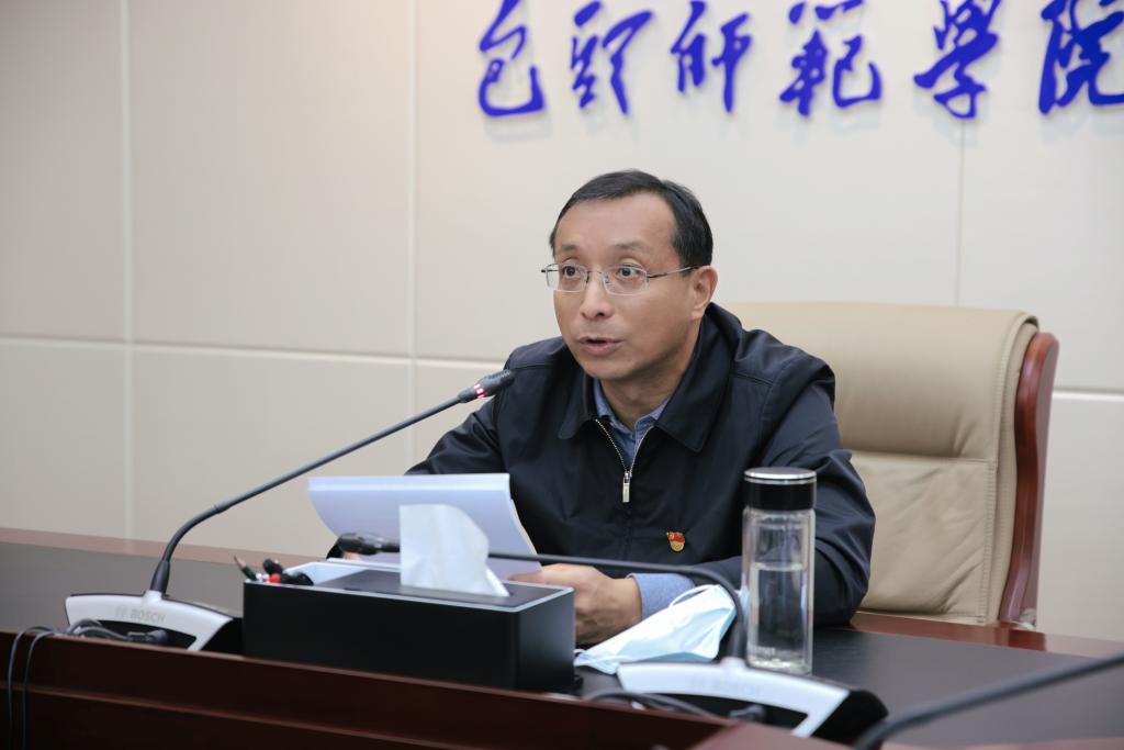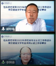 学校师范类专业认证专家组组长、图书馆馆长胡琮禹就师范类专业认证工作做了深入指导;文学院副院长李国德做自评报告补充汇报;教务处赵建军处长对师范类专业认证推进工作作了安排部署。