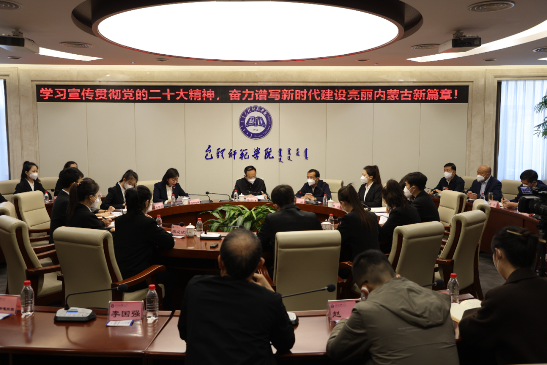 虽是孟冬时节,包头师范学院的校园内却暖意融融。11月15日上午,学校第二学术报告厅内气氛热烈,学习贯彻党的二十大精神中央宣讲团宣讲座谈会在这里举行。师生们围坐在中央宣讲团、中央组织部原副部巡视专员吴瀚飞同志的身边,认真聆听宣讲报告。