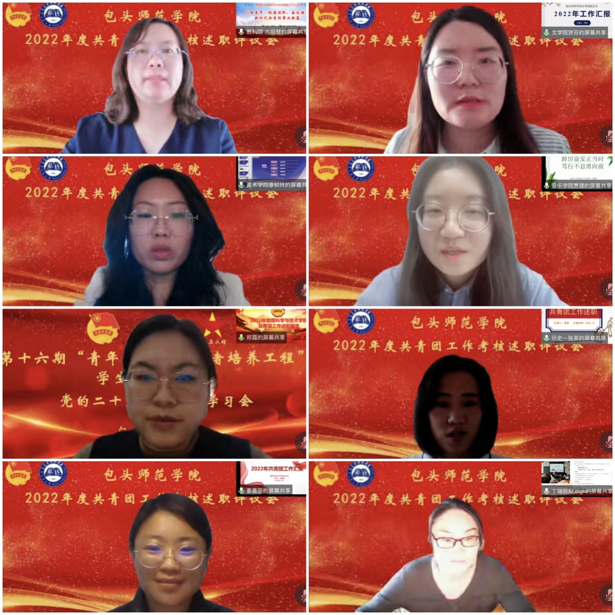 按照上级团组织关于2022年度高校共青团工作考核总体要求,为进一步深化共青团改革,落实全面从严治团要求,加强基层团组织建设,建设强有力的学校基础团组织。12月6日下午,我校2022年度共青团工作考核述职评议会通过线上形式召开。会议由校团委副书记张锐主持。