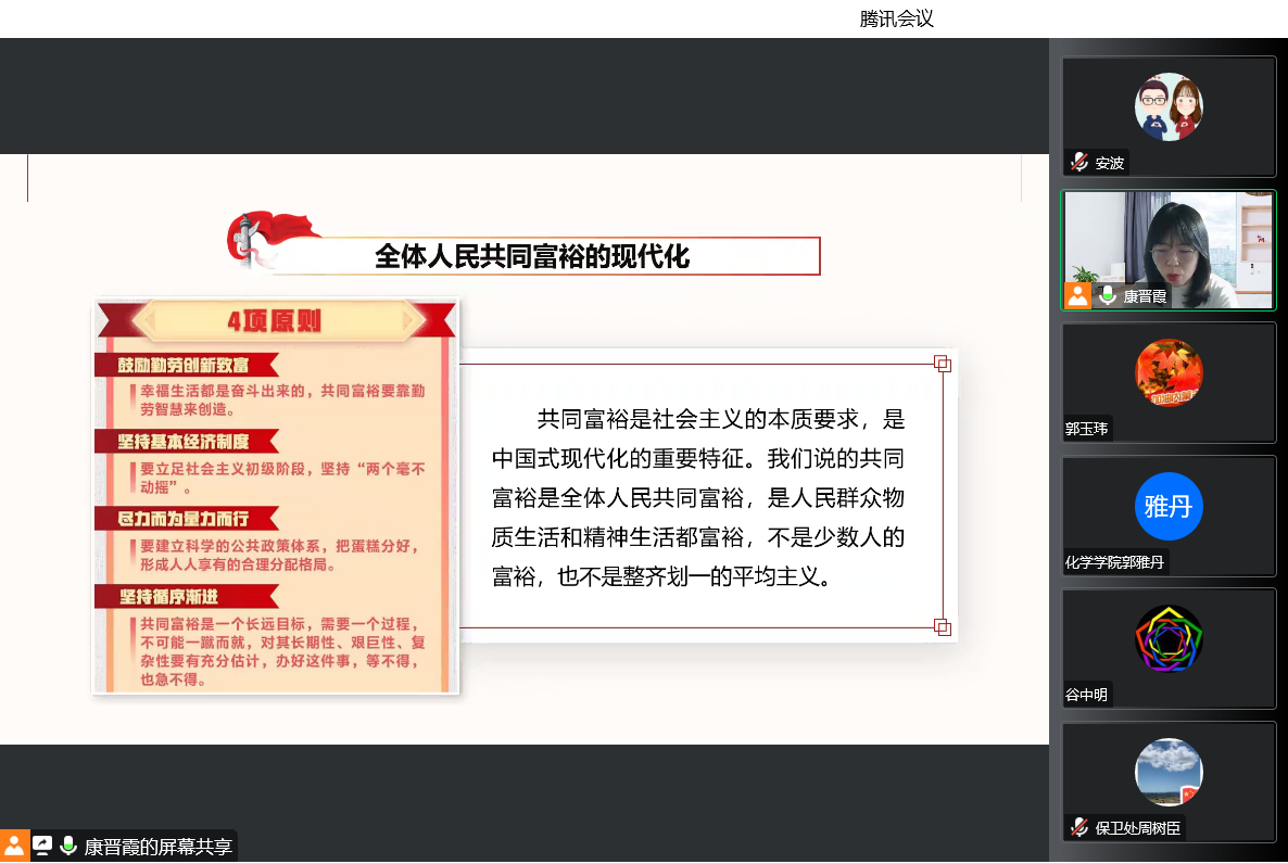 马克思主义学院教师康晋霞所作讲座题为“以中国式现代化全面推进中华民族伟大复兴”,她从“中国式现代化是具有中国特色的社会主义现代化”“中国式现代化推动实现中华民族伟大复兴进入了不可逆转的历史进程”“全面建设社会主义现代化国家牢牢把握的重大原则”三个方面为教职工一班讲解了中国式现代化对全面建设社会主义现代化国家的重大意义。