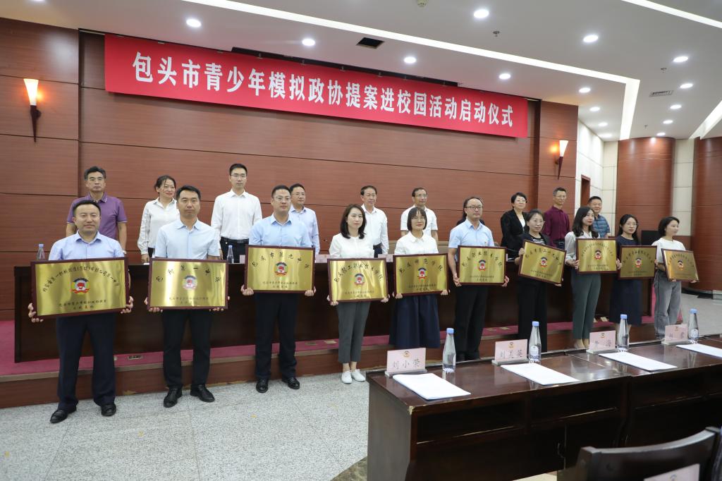 启动仪式上,宣布包头师范学院、包头职业技术学院、包头轻工职业技术学院、包钢一中、一机一中、包九中、包29中、北重一中、钢三小、哈达道小学等10家单位被认定为“包头市青少年模拟政协提案实践基地”,并举行了授牌仪式。