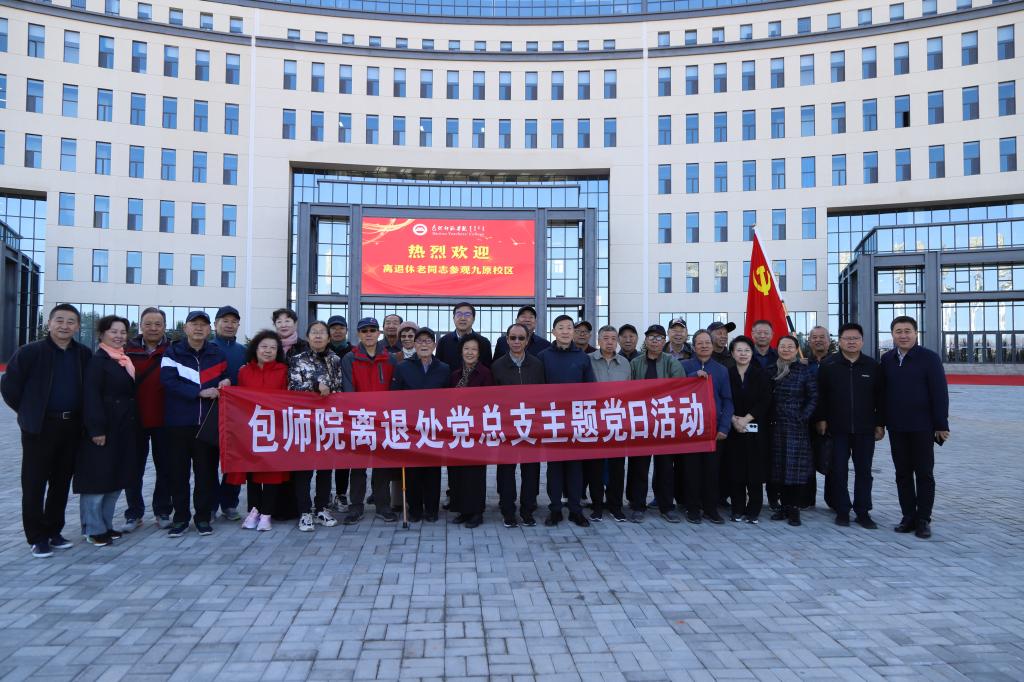 在全党深入开展学习贯彻习近平新时代中国特色社会主义思想主题教育之际,我校离退休各党支部联合开展了“学思想、话发展、聚力量”主题党日活动。10月8日上午,5个离退休党支部30余名党员,由学校党委副书记施纪华和组织部部长、离退休工作处负责人史瑜带队到我校九原新校区参观,宣传部部长、九原校区管委会负责人呼禾全程进行了讲解。