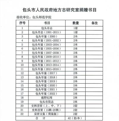 10月26日下午,包头市人民政府地方志研究室为我校捐赠图书活动在图书馆二楼举行。包头市人民政府地方志研究室副主任张莉一行为我校捐赠了各类包头地方志史书籍共计42套/本,胡琮禹馆长向张莉副主任颁发了捐赠证书。图书馆部分老师、博雅读者协会部分会员参加了捐赠活动。活动结束后,包头市人民政府地方志研究室领导一行参观了我校图书馆阴山文化特色文献库。值此全党开展学习贯彻习近平新时代中国特色社会主义思想第二批主题教育之际,包头市人民政府地方志研究室开展的“地方志书进校园”活动,把系统的包头地方志史送到了我校,在一定程度上补缺了图书馆阴山文化文献,进一步丰富了特色馆藏,以实际行动体现了“学思想、强党性、重实践、建新功”的总要求,在“以学铸魂、以学增智、以学正风、以学促干”方面有了实实在在的举措和成效。(图书馆)