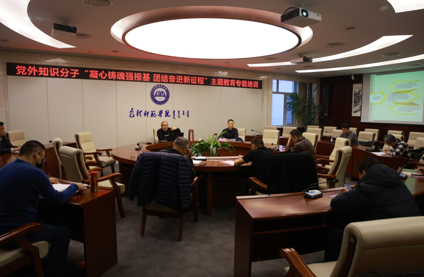 本次讲座由包头市委党校教师、市委宣讲团成员石志刚主讲。石老师以“发展社会主义民主政治,建设社会主义协商民主”为题,围绕“协商民主的理论、协商民主的特点与独特优势以及协商民主在中国的运用”等内容,通过列举大量案例,深入浅出地为大家讲解了协商民主的内涵以及如何进行协商,对于充分发挥各民主党派、无党派人士参政议政和民主监督作用,助推学校各项事业高质量发展具有重要意义。