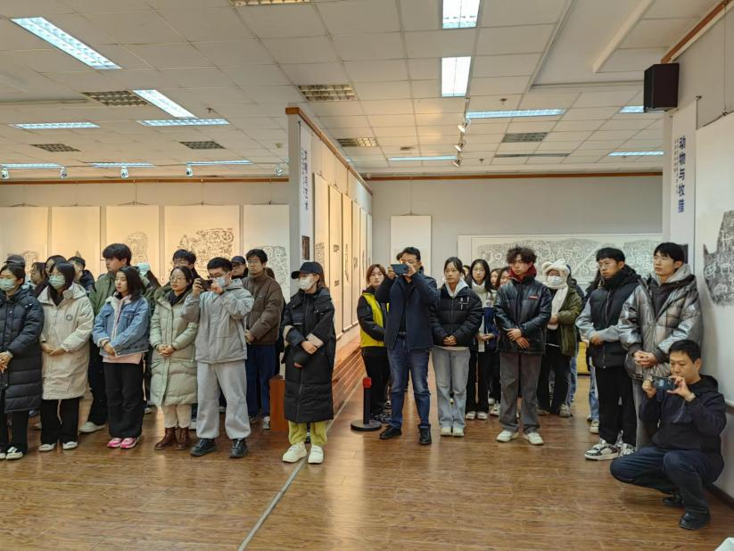 此次艺术展共精选80余幅阿拉善岩画拓片艺术作品,作品内容分别从崇拜与信仰、动物与牧猎、文明与艺术、繁衍与聚落四个板块集中展现。展陈内容吸引了前来观展的师生们,大家围绕展览主题与专家学者进行交流与讨论。(党委宣传部、美术学院)