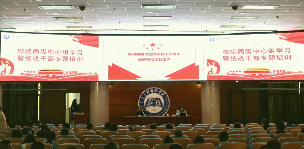 11月20日下午,学校举办校院两级中心组学习暨统战干部宗教专题辅导讲座。全校副处级以上干部、各党总支统战委员、各学院学工办主任、辅导员、班主任参加了集体学习。