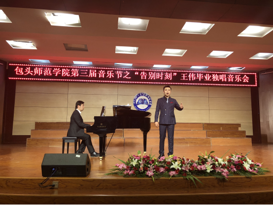 5月31日晚,我校音乐学院2018届毕业生王伟举办了“告别时刻”个人独唱音乐会,我校音乐学院声乐副教授白华老师担任指导。音乐会上,王伟深情演绎了十一首声乐作品,曲目涵盖中外艺术歌曲、中外民歌、歌剧咏叹调等。音乐会以经典曲目《Time to Say Goodbye》结束,标志着王伟同学四年学习生涯完美落幕,即将走出校园开始新的人生征程。