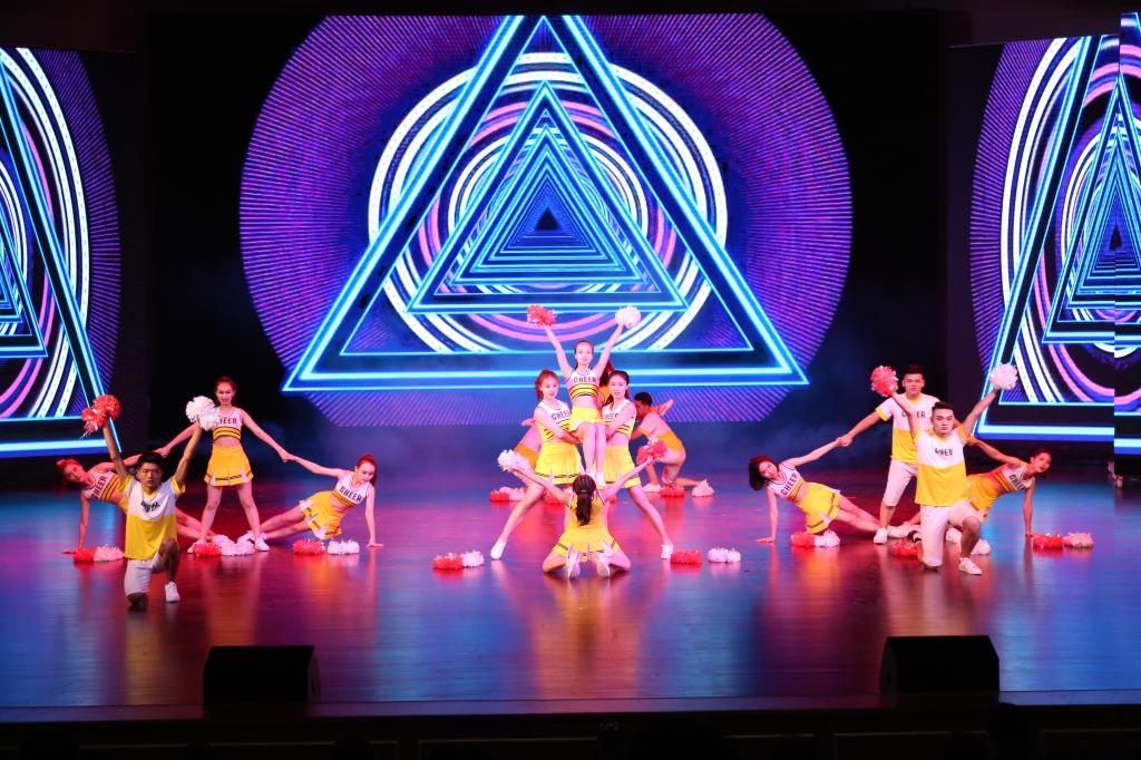 开场节目無方乐队带来的歌曲《还我蔚蓝》使现场的气氛瞬间点燃。首先由体育学院及音乐学院选派的3支专业组代表队依次登场,比赛中各支队伍从舞蹈编排、音乐选择,整体构思及动作设计都做了非常充分的准备,将健美操、啦啦操的专业水平诠释的淋漓尽致;“花踌躇,柳轻叹”我校中心社团大学生民族舞蹈团带来的舞蹈《咏春》以轻柔典雅、绚丽多姿,极具东方神韵的舞姿给紧张的比赛增添了几分清新与从容;比赛第二部分由各学院选派的14支非专业组代表队竞技比拼。同学们用灿烂的笑容、矫健的舞姿、默契的配合、坚定的自信呈现了师院学子活力四射和健康自信的精神面貌。近2个小时的精彩角逐,台上热情洋溢,台下掌声雷动,所有队员们具有动感的表演,感染着在场的每一位师生。