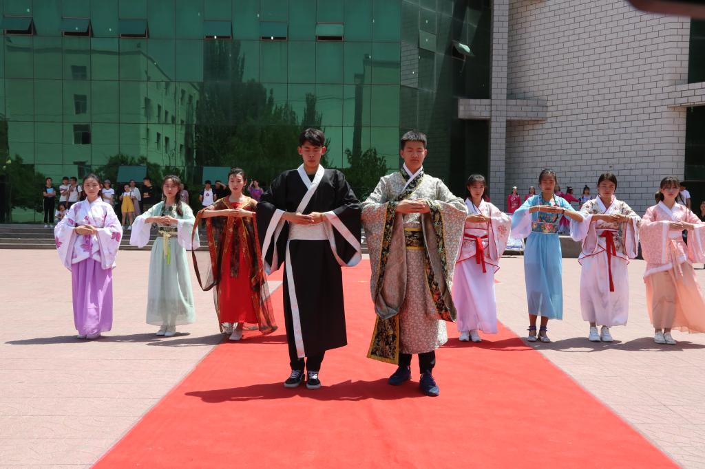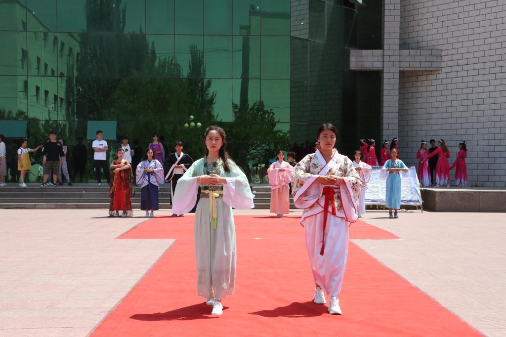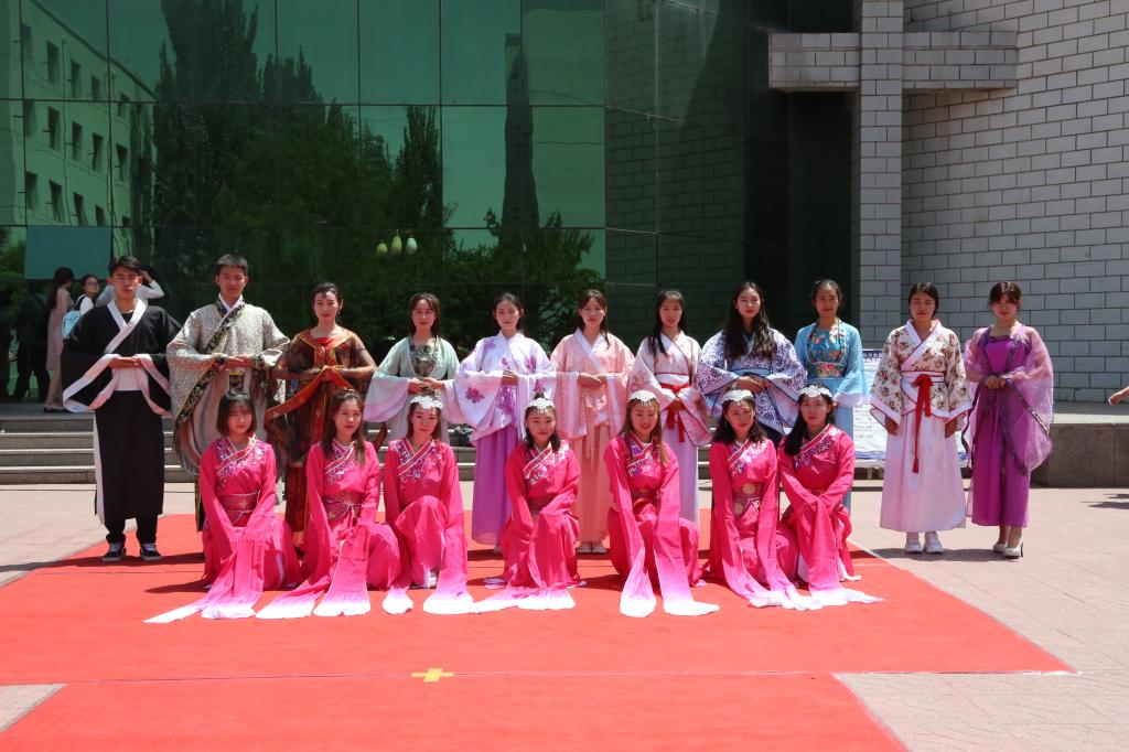 5月15日中午,我校第十九届校园文化艺术节之“青春齐颂传统韵·青年共扬国学情”中华优秀传统文化宣传月系列活动——第三卷“华服礼仪文化展”在学子广场活力开展。校学生会、各学院学生分会学生干部及各级学生社团成员500余人参与并观看了本次华服礼仪文化展。