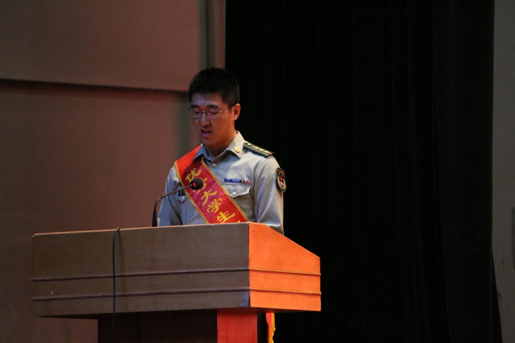 仪式中我校优秀退伍复学大学生代表2015级国际物理专业学生越圆、提干大学生代表某旅军医梁昊、退伍参加工作的优秀大学生代表青山区青福镇政府职员夏婷、我校积极应征入伍大学生代表2014级会计专业学生张恒依次发言。最后盛林政委在讲话中详细讲解了大学生入伍相关政策和报名流程。仪式开始前,全体参会人员观看了征兵宣传片。