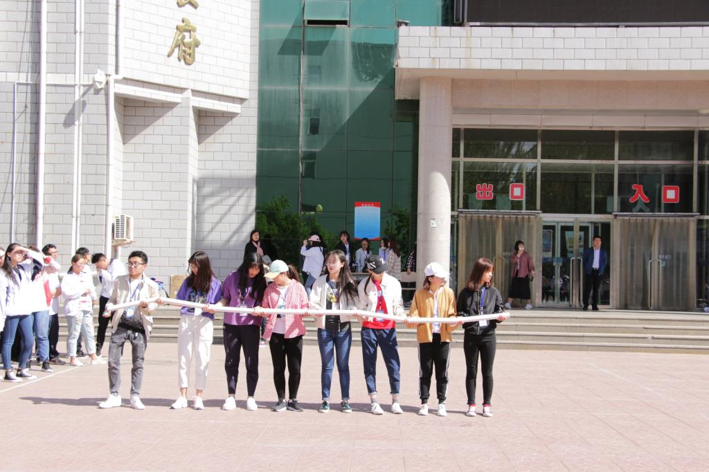美术学院学工办主任康树林和数学学院学工办主任宋金锦组织了团体心理拓展活动。16个学院代表队,共128名同学参加了“珠行万里”、“不倒森林”和“翻叶子”等团体拓展活动。现场气氛热烈,学生参与活动积极性高。