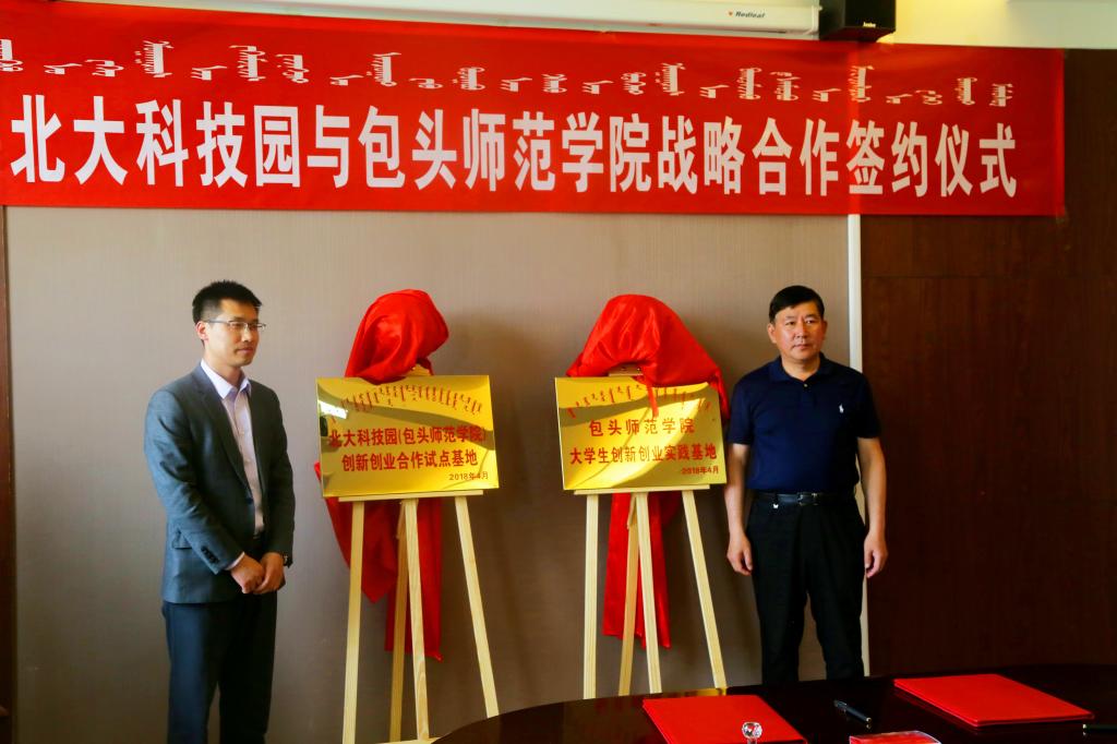 仪式上,刘兴旺同志代表学校首先介绍了我校办学的基本情况以及创新创业工作取得的成效。他指出,北京大学以及北大科技园的优质资源能够引到我校,必将对我校办学以及创新创业教育工作的开展起到非常好的推动作用。北大科技园是全国一流的创新创业孵化平台,也是全球知名的创新创业孵化器,我校将借助北大科技园的综合资源优势,推进我校教师科研成果的快速转化,推动大学生创新创业项目的快速孵化,实现师生同创的良好局面。随后,田瑞波先生详细介绍了北大科技园发展、运营情况。他谈到,前期北大科技园考察了自治区高校创新创业的工作,也详细了解了我校创新创业工作的开展情况,在几次的交流和合作中最终确定了在我校建立试点基地。他指出要发挥各自在科技创新、产业集聚等方面的优势,助力创新创业工作的发展。随后,刘兴旺同志和田先生代表双方签订了战略合作协议并揭牌。至此,我校正式成为北大科技园创新创业合作试点单位。