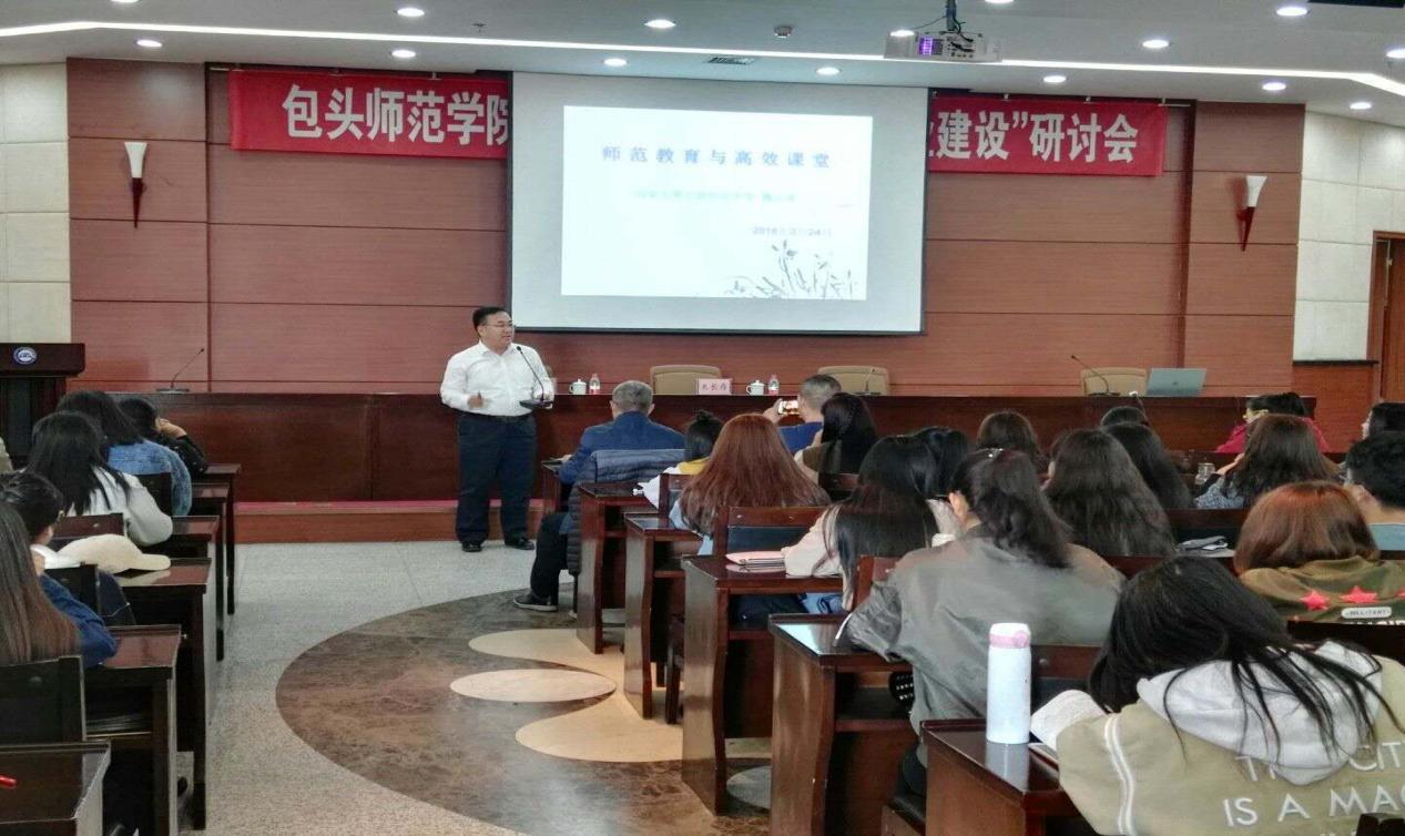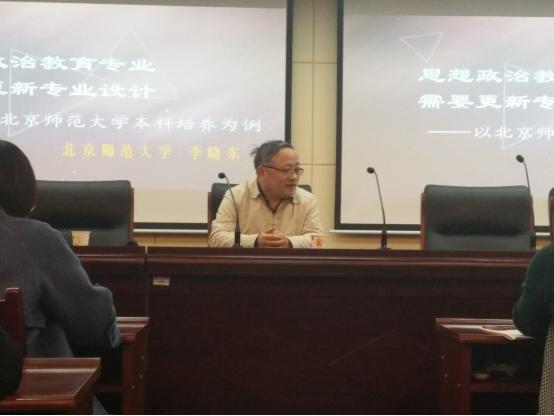 一是主题为“思政专业需要更新专业设计—以北师大为例”的讲座,特邀北京师范大学哲学学院哲学博士、李晓东教授作为会议的主讲嘉宾。他主要讲述了中学教材中党和国家指导思想的更新,思想政治学科的核心素养、培养目标,就业导向等方面的内容。我校思政专业全体教师和包头地区中学部分一线教师聆听了讲座。