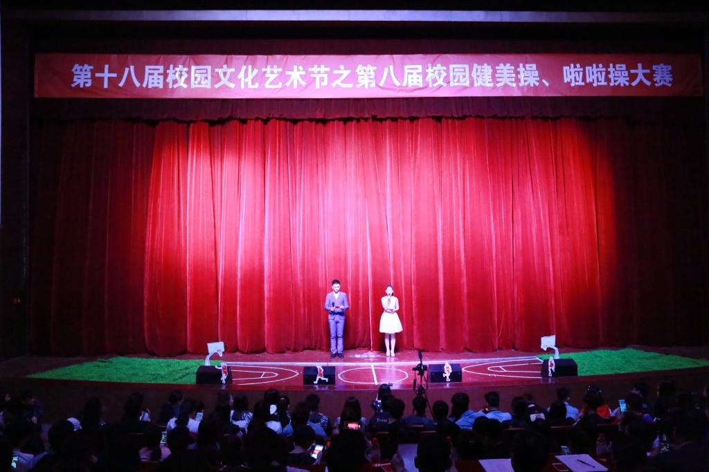为贯彻落实团中央《关于进一步推进大学生“走下网络、走出宿舍、走向操场”主题群众性课外体育锻炼工作的通知》精神,5月11日晚19:00点,我校第十八届校园文化艺术节之第八届“起舞青春、悦动校园”健美操、啦啦操大赛在会堂精彩开赛。团委负责人、部分学院相关领导,团总支书记、辅导员,学生代表900余人观看了比赛。