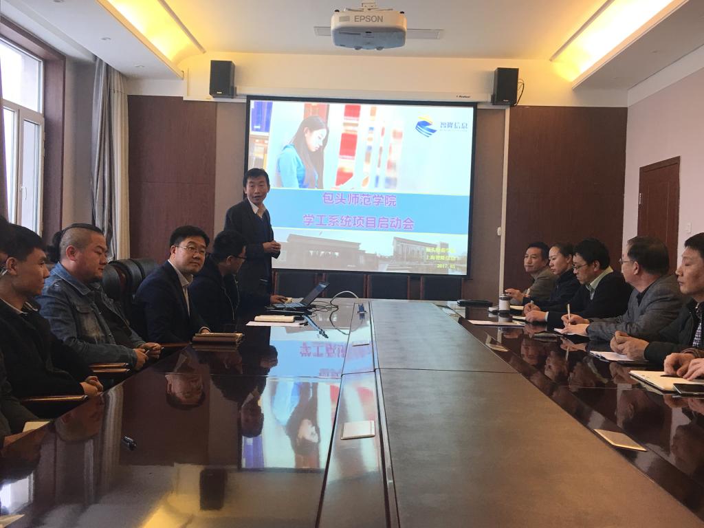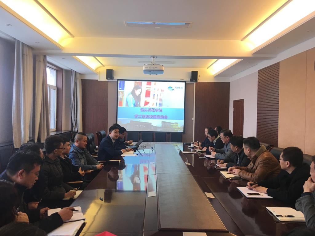 会上,学生工作部副部长郭志峰对2016年进行的系统选型、调研、合同签定、项目承接方入驻等工作情况做了说明。项目经理董福强对项目的实施方案,特别是需求调研等关键内容做了说明。网络中心主任姚秀山对项目建设中面临的接口标准问题和开发、培训、验收等相关问题与厂家交换了意见。郭志峰同志请所有学工系统建设的参与者高度重视项目开发,要积极、主动地研究业务流程,通过充分的需求说明与业务交流,建设符合包头师范学院学生工作实际和特点的学生工作管理系统。学生工作部部长尚海涛强调所有参与者一定要把自己定位为系统的主人,共同为建设智慧校园发挥作用。(学生工作部)