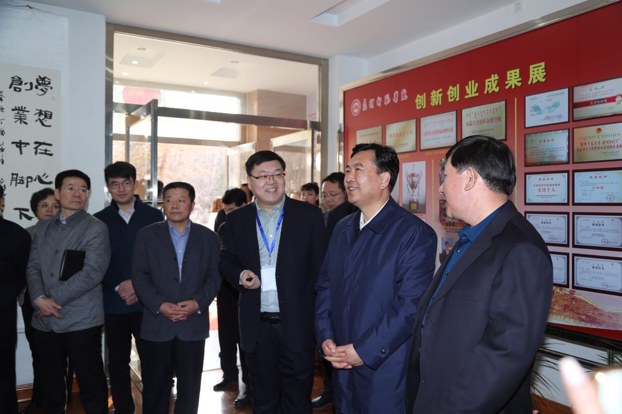 3月14日,自治区党委常委、市委书记张院忠来我校调研指导工作。张院忠饶有兴趣地参观了美术馆和美术学院,并深入创业学院了解大学生创新创业情况。张院忠强调,大学生是实施创新驱动发展战略和推进大众创业、万众创新的生力军,希望广大大学生既要认真学习、掌握更多知识,也要积极投身创新创业、提高实践能力。张院忠来到外国语学院时,学院党团组织正在开展党团合力解时事活动,同学们用英语相互交流探讨李克强总理2017年政府工作报告。张院忠对这一活动给予高度评价,指出“这既提高了学生对专业知识的应用能力,又促进了大家对国情区情、时事政策的了解。”