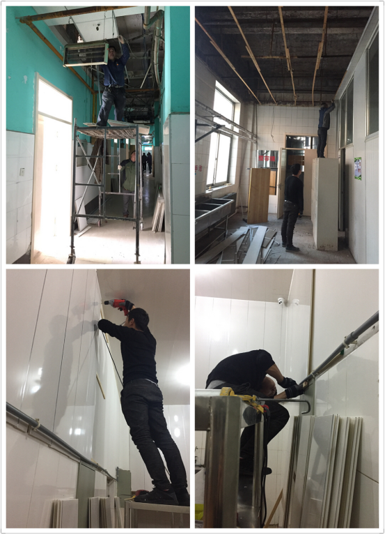 南院学生食堂一些操作间因蒸汽较大,部分墙体防水涂层开裂脱落、吊顶霉变。寒假期间,餐饮服务管理中心将霉变吊顶进行更换,还将400㎡左右开裂脱落防水涂层,全部更换成铝塑扣板,彻底解决了防水涂层开裂脱落的问题。