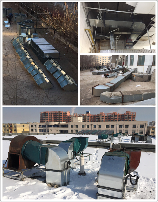 寒假期间,餐饮服务管理中心对北院学生食堂排油烟管网进行了彻底更换改造,将原室内圆形管道更换为通风量更大的正方形管道,还将原横向管网布局改为了纵向直通屋顶式布局。改造后,每个经营组排油烟管网长度平均缩短约7-12米,有效提高了排油烟效能,杜绝了渗油现象。