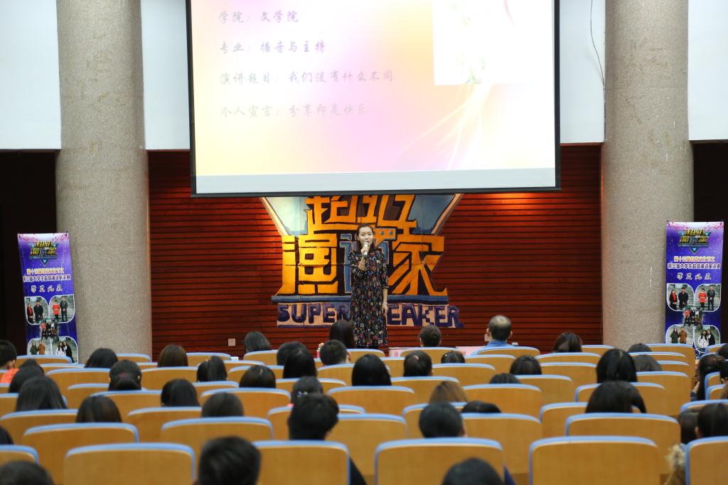 11月15日晚7:00第十三届社团文化节之第三届“超级演说家”决赛在学术报告厅举行。党委宣传部康震玉老师、学报编辑部韩芳老师、政治与法律学院魏成老师、文学院黄一楠老师担任了本次比赛的演说导师,来自各学院的500余名学生观看了本场比赛。