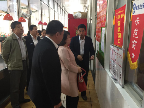 后勤处处长毕可强、副处长王跃平和餐饮服务管理中心相关负责人陪同检查。(后勤处)