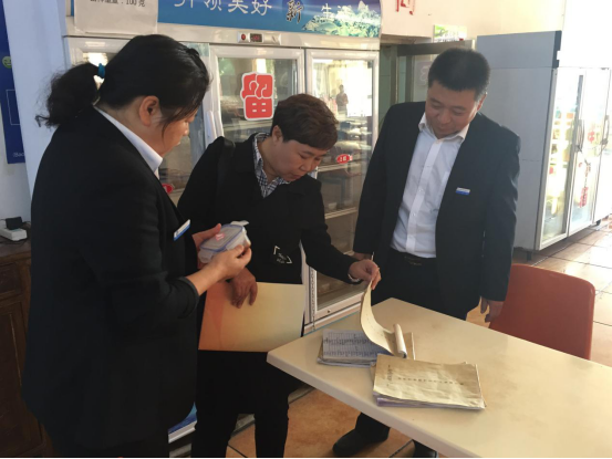 (教育厅学校联合督查组专家查看学生食堂饭菜留样工作)