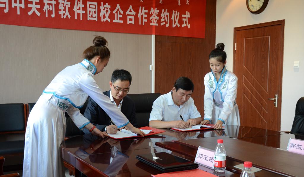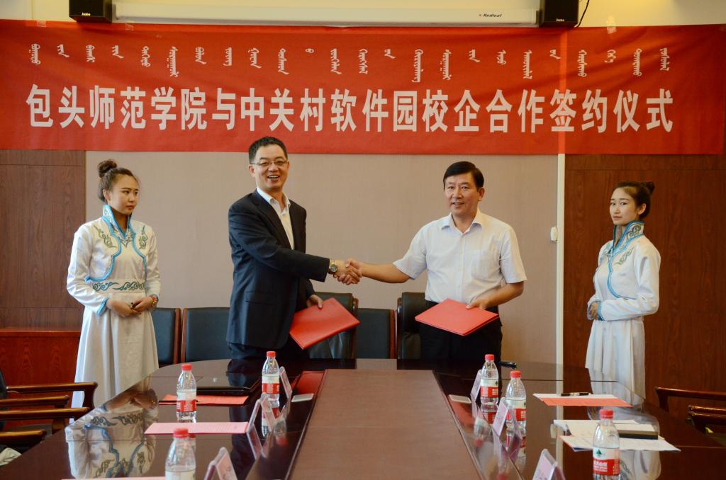 2016年9月23日,刘兴旺院长与中关村软件园产业服务部经理(人才基地总监)邓延嵘代表包头师范学院和中关村软件园签订校企合作协议。