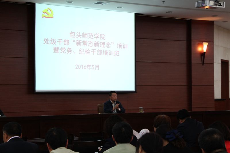5月27日上午,我校处级干部“新常态新理念”培训暨党务、纪检干部培训班在图书馆会议厅开班。学校党委书记王永明做了题为《学习贯彻十八届五中全会精神,以新的理念推动学校事业发展》的形势报告。全校副处级以上干部、各党总支纪检委员、党务部门副科级以上干部参加了培训。
