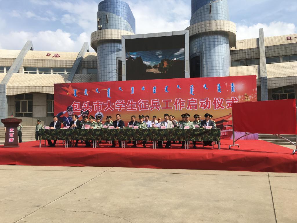 仪式上,内蒙古科技大学副校长吕晓琪致辞,2名学生代表分别发言,表达了当代大学生保家卫国的满腔热忱和对部队生活的向往。包头军分区司令员王铁鹏和包头市政府副秘书长李新亮为“征兵工作站”挂牌揭幕。包头军分区参谋长李虎讲话,重点强调了大学生征兵工作的战略意义,并对大学生入伍政策进行了解读。
