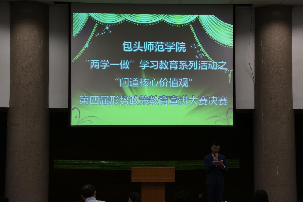 5月18日晚,我校第十七届校园文化艺术节第四届“问道核心主义价值观”大学生形势政策教育宣讲大赛在学术报告厅举行。比赛邀请到马克思主义学院副院长高德胜老师、校党委宣传部康震玉老师、学报编辑部韩芳老师、政治与法律学院李霞、魏成老师担任评委。党委组织部副部长、机关党总支书记齐玲老师、团委副书记刘晓娟老师出席了本次活动,参加活动的还有我校理论社团成员及各学院学生代表500余人。