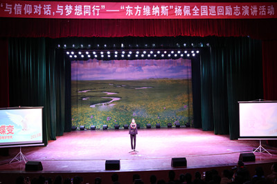 为培育和践行社会主义核心价值观,加强青年学生思想和价值引领,坚定理想信念,弘扬青春正能量,3月24日下午,由校团委主办的“与信仰对话,与梦想同行”——“东方维纳斯”杨佩全国巡回励志演讲活动在会堂举行,我校大学生理论社团成员,各学院团总支成员、理论社团成员,各班团支部书记、班长、组宣委员,部分学生代表参加了活动。