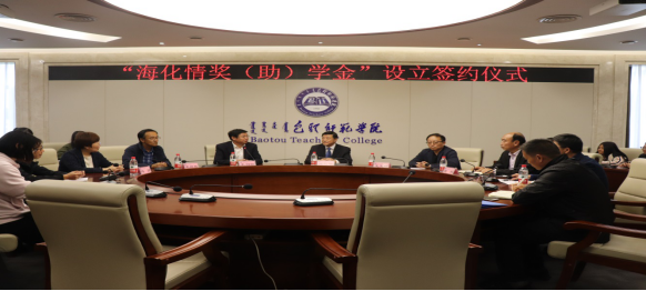 仪式上,魏兵老师介绍了捐赠人的基本情况,施纪华副院长与王羽跃副总经理签署了“海化情”奖(助)学金捐赠协议,随后王总发表了感情至深的讲话,他表示在包头师范学院(前身包头师范专科学校)培养下,才有了今天的成就,事业发展不忘回报母校,出资设立奖(助)学金旨在帮助家庭贫困的大学生能够顺利完成学业,使他们社会有用之才。
