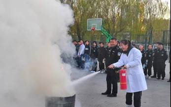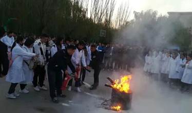 下午17点左右,所有参演学生到旧篮球场进行灭火器使用及实地灭火演练。消防科工作人员对干粉灭火器和二氧化碳灭火器的灭火原理、操作使用方法和注意事项等做了细致讲解,现场指导学生进行灭火实操。