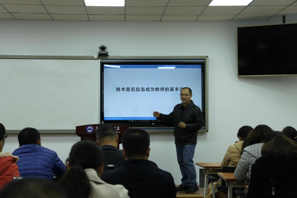 林教授针对教学改革中的“痛点”,并结合自身使用超星泛雅平台和学习通的教学实践,与大家分享了采用信息化教学方法改进课堂教学的思路和有益尝试,并介绍了手机端学习通的实战教学运用。他通过教学数据的应用和分析,为老师们展现了信息技术与课堂教学融合的趋势与魅力,讲座博得老师们的一致好评。林教授的讲解点燃了教师们使用网络教学资源平台的热情。讲座结束后,一些教师积极提问,林教授与在场教师进行了热烈的交流互动。(教务处)