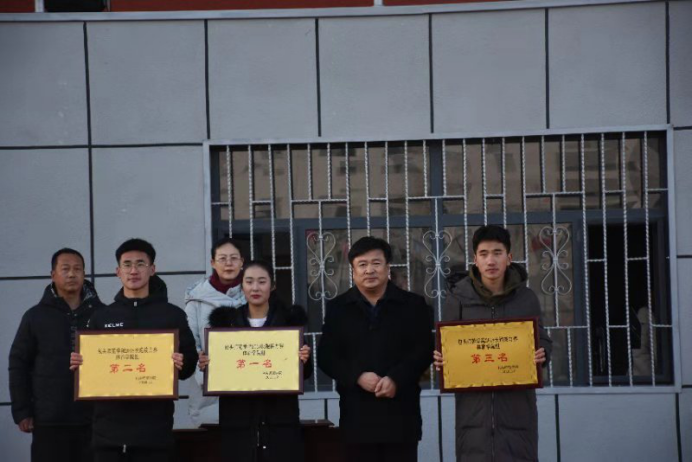 体育学院党总支书记李明升为体育学院组前三名代表队颁奖