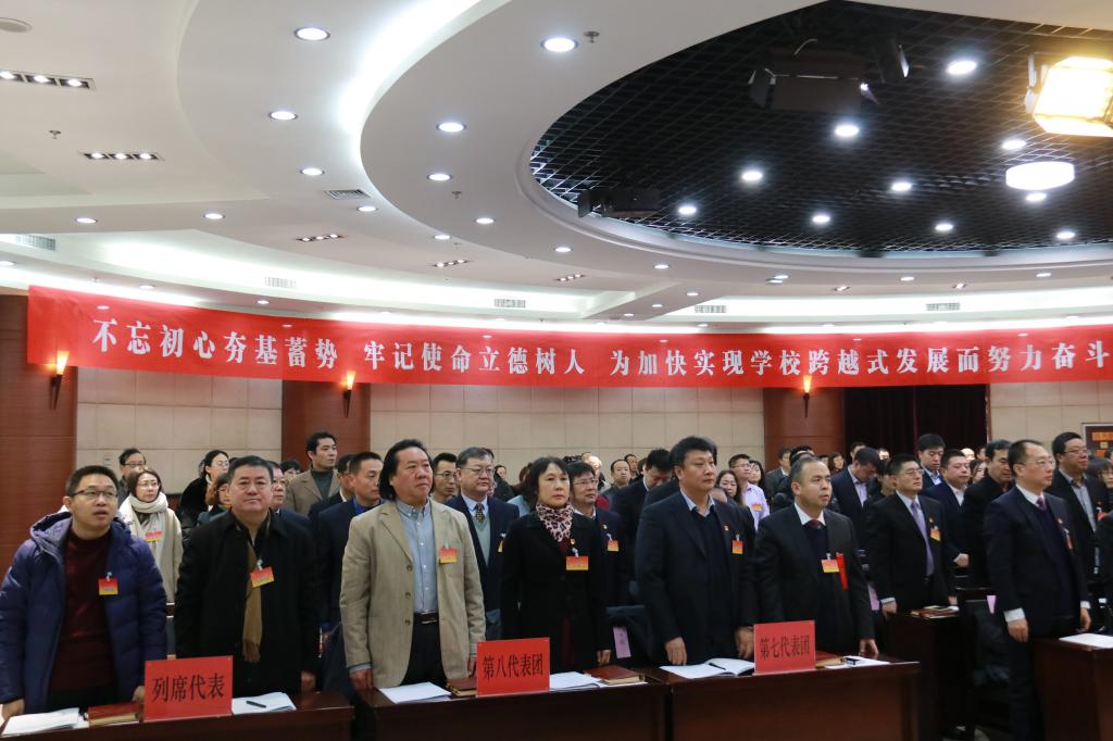 大会的主题是:以习近平新时代中国特色社会主义思想为指导,全面贯彻落实党的十九大、全国全区高校思想政治工作会议、全国教育大会精神,不忘初心夯基蓄势,牢记使命立德树人,推进全面从严治党,加强内涵建设,为加快实现学校跨越式发展而努力奋斗!