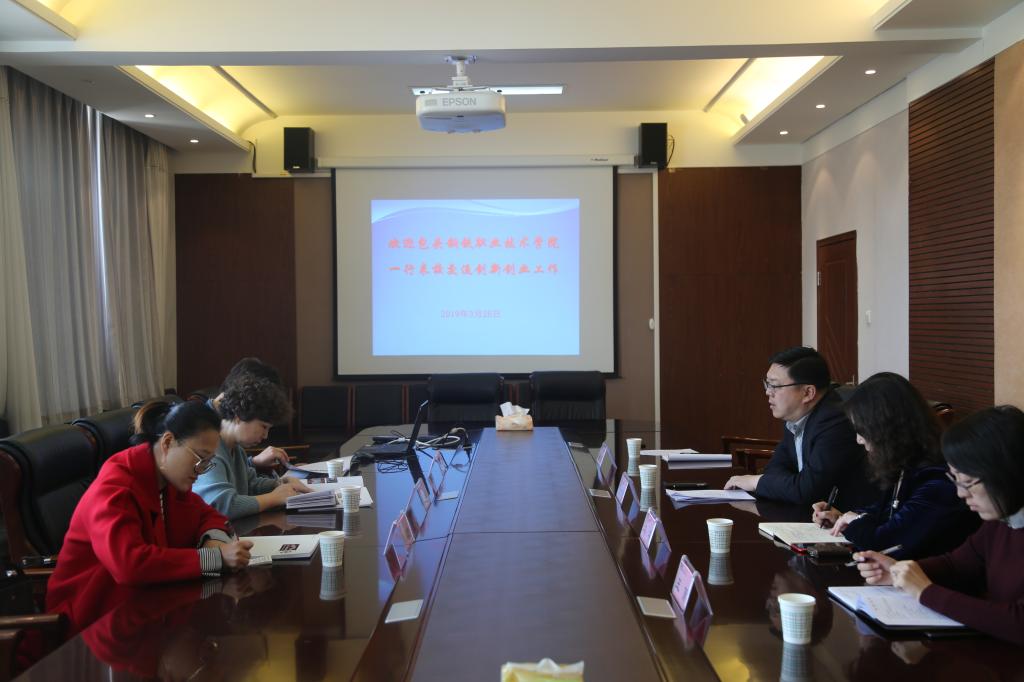 3月26日上午,包头钢铁职业技术学院一行3人来我校考察交流创新创业工作。我校在办公楼第二会议室召开座谈交流会,创业教育学院院长张东虎及相关科室负责人参加了座谈交流会。