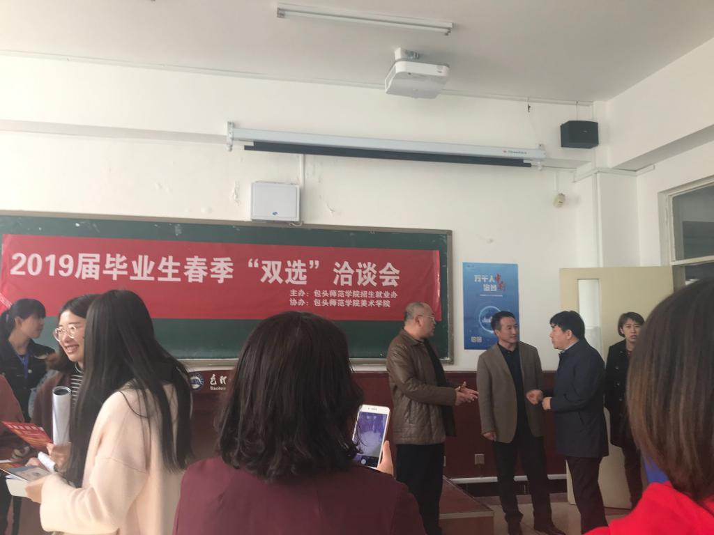与往年相比,2019年招聘会具有这些主要特点:一是参与招聘的用人单位涉及地域更为广泛,在以包头地区企业为招聘主渠道的基础上,来自广东、北京、河北、河南及新疆的企业和教育机构也开始在我校招聘毕业生,并且工资及生活待遇不断提高,尤其是新疆和田和喀什地区,已连续三年招聘我校毕业生,2019年更是从招聘数量和岗位方面加大了力度;二是二级学院参与度越来越高,今年举办的12场招聘会, 8个二级学院分别承办,其中文学院、外国语学院各承办了3场招聘活动;三是政府对大学生就业工作高度重视,3月21日,包头高新技术人才市场(自治区西部人才市场、包头市人才交流中心)主任刘琨一行来我校调研,就专业设置及生源情况、毕业生就业情况和“大学生集聚计划”政策落实情况等内容和我校相关部门进行了广泛的交流,为高校大学毕业生就业工作及高校与人才市场精准对接工作提供了指导; 3月28日举行的大型综合双选会,就是由招生就业处主办,美术学院承办,市委统战部协办完成的。招聘会期间,市委统战部副部长王计峰等同志还亲自到会指导工作,查看企业招聘岗位及毕业生应聘情况,本次大型招聘会,参与企业164家,提供招聘岗位700个,覆盖了教育、行政管理、市场营销、建筑业、信息运输、软件和信息技术服务业等多个专业领域,拟招聘毕业生数3419人。