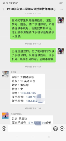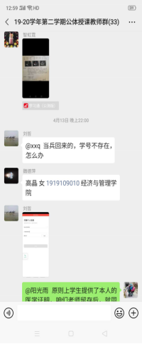 教师群里老师在为学生课外“室内锻炼”积极地解决学生反馈的各种问题