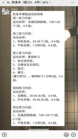 教师为学生们录制了室内锻炼的动作示范视频,在学生的帮助下利用三天时间完成了7段视频的剪辑,并通过校园跑平台将我们老师自己录制的示范动作上传到APP中,方便学生随时观看同时进行模仿练习。