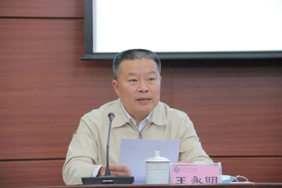 王永明同志代表学校党委和全体师生员工表态,坚决拥护自治区党委关于我校校级领导的任免决定,向为包师发展做出突出贡献的刘兴旺同志表示由衷地敬意和感谢,热烈欢迎并全力支持金桩同志到我校工作。他表示,当前,我们要继续深入学习贯彻习近平新时代中国特色社会主义思想,树立“四个意识”、坚定“四个自信”,坚决做到“两个维护”,秉承“博学笃行、齐志恒德”的校训,切实抓好新冠肺炎疫情的防控和开学复课的有序进行,紧紧围绕本科教学这个中心工作,着力抓好一流学科建设、师范专业认证、服务地方发展等中心工作,认真落实好立德树人这个根本任务,坚持贯彻落实党的教育方针,圆满完成““十三五”事业发展规划”,科学谋划““十四五”事业发展规划”,努力推动学校各项事业、各项工作稳健迈上新台阶!