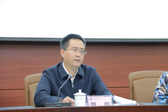 周凯同志受自治区党委常委、组织部部长杨伟东同志的委托,对学校工作提出三点要求:一要旗帜鲜明讲政治,加强党对高校工作的全面领导;二要聚焦“双一流”建设,全力推进内涵建设和教育教学质量的提升,突出教师教育的特色和优势,努力打造特色鲜明,多学科协调发展,服务地方能力较强的高水平师范院校,特别要进一步做好疫情常态化防控工作,扎实做好复学复课工作;三要加强班子建设,着力营造良好政治生态。
